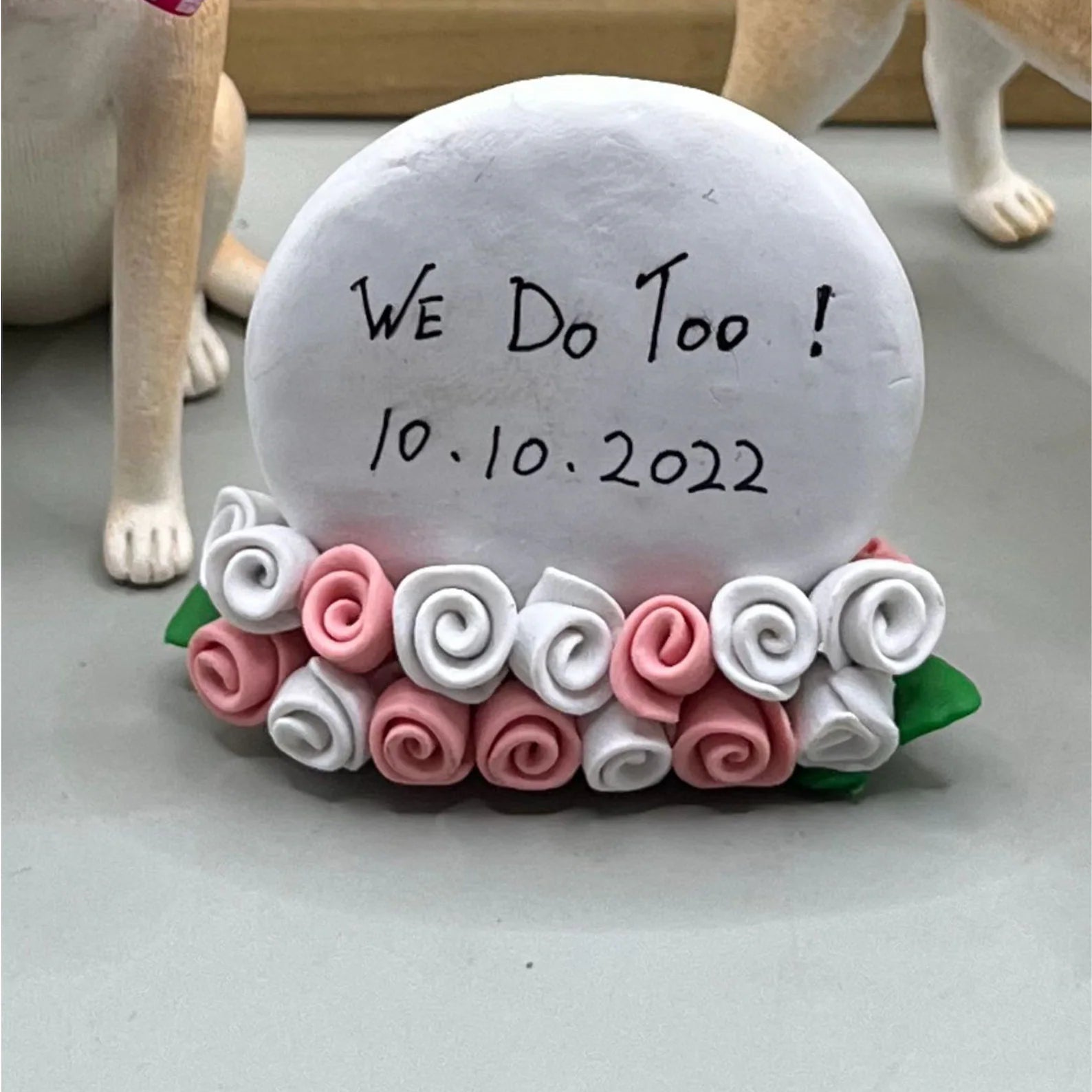 We are absolutely thrilled to see our sweet pup in figurine form! We sent photos of him from a few different angles and the craftsperson did an incredible job of matching his coloring - even though it's very unique and complex. We love it so much and can't wait to use it on our wedding cake! Thank you! Susie Bristol